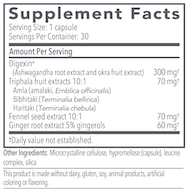 • Triphala (extractos de fruta 10:1): 70 mg, que incluye amalaki (Emblica officinalis), bibhitaki (Terminalia bellirica) y haritaki (Terminalia chebula).
