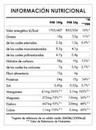 INGREDIENTES: Copos de avena (sin gluten), Proteína de semillas de calabaza, Pasta de almendra, Harina de avena (sin gluten), Cacao en Polvo, Plátano en polvo, Dátiles en polvo, Semillas de Lino Molido, Aroma natural de chocolate