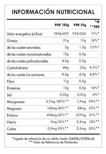 INGREDIENTES: Semillas de girasol, Trigo sarraceno molido, Crema de avellana (100% avellanas tostadas), Copos de avena (sin gluten), Cacao en Polvo, Semillas de Lino Molido