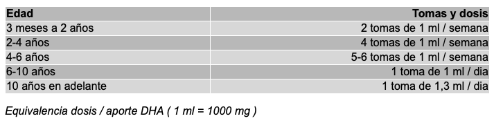 En ciertas circunstancias relacionadas con el estado emocional, la conducta o el aprendizaje infantil, el pediatra puede recomendar dosis elevadas de DHA. En estos casos, puede ser necesario recurrir a suplementos, ya que resulta difícil alcanzar esos niveles únicamente mediante el consumo de pescado.