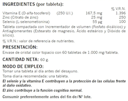 Vitamina E + Selenio + Zinc reúne tres nutrientes clave con acción antioxidante que ayudan a cuidar tu cuerpo frente al desgaste del día a día. La vitamina E contribuye a proteger las células del estrés oxidativo, mientras que el selenio y el zinc apoyan el funcionamiento normal del sistema inmunitario, favorecen la fertilidad y ayudan a mantener un buen estado general de salud. Una combinación práctica y equilibrada para reforzar tu bienestar de forma natural.